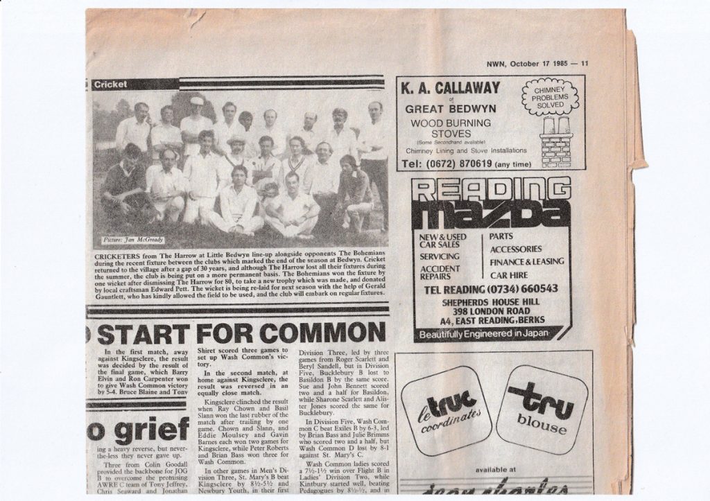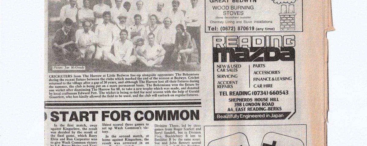 Match Report by Newbury Weekly News: Cricketers from The Harrow at Little Bedwyn line-up alongside opponents The Bohemians marking the end of the season.